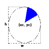 The coordinate (xc,yc) defines the center of the ellipse. Dimensions w and h define the elliptic axes X and Y, respectively.